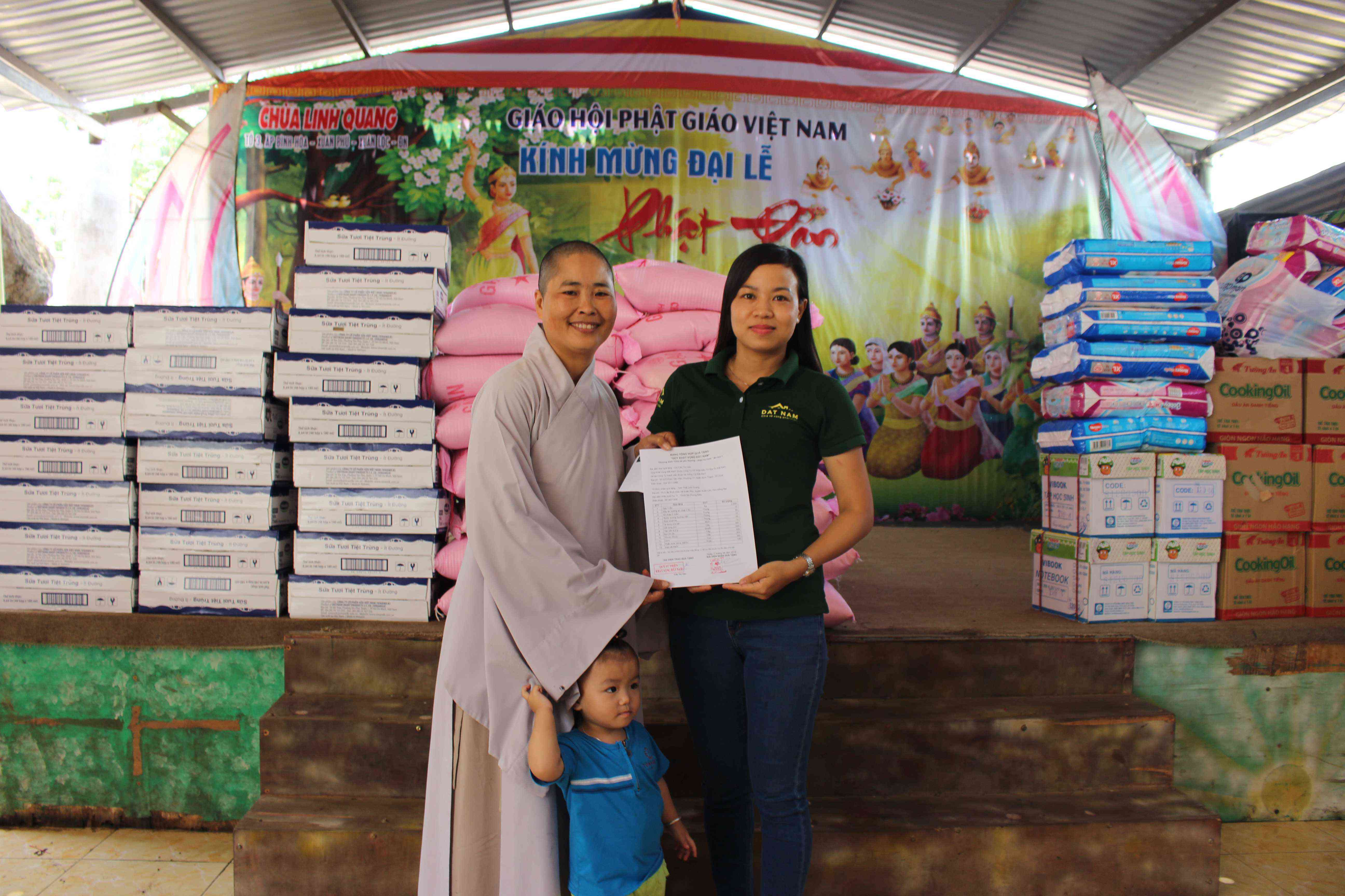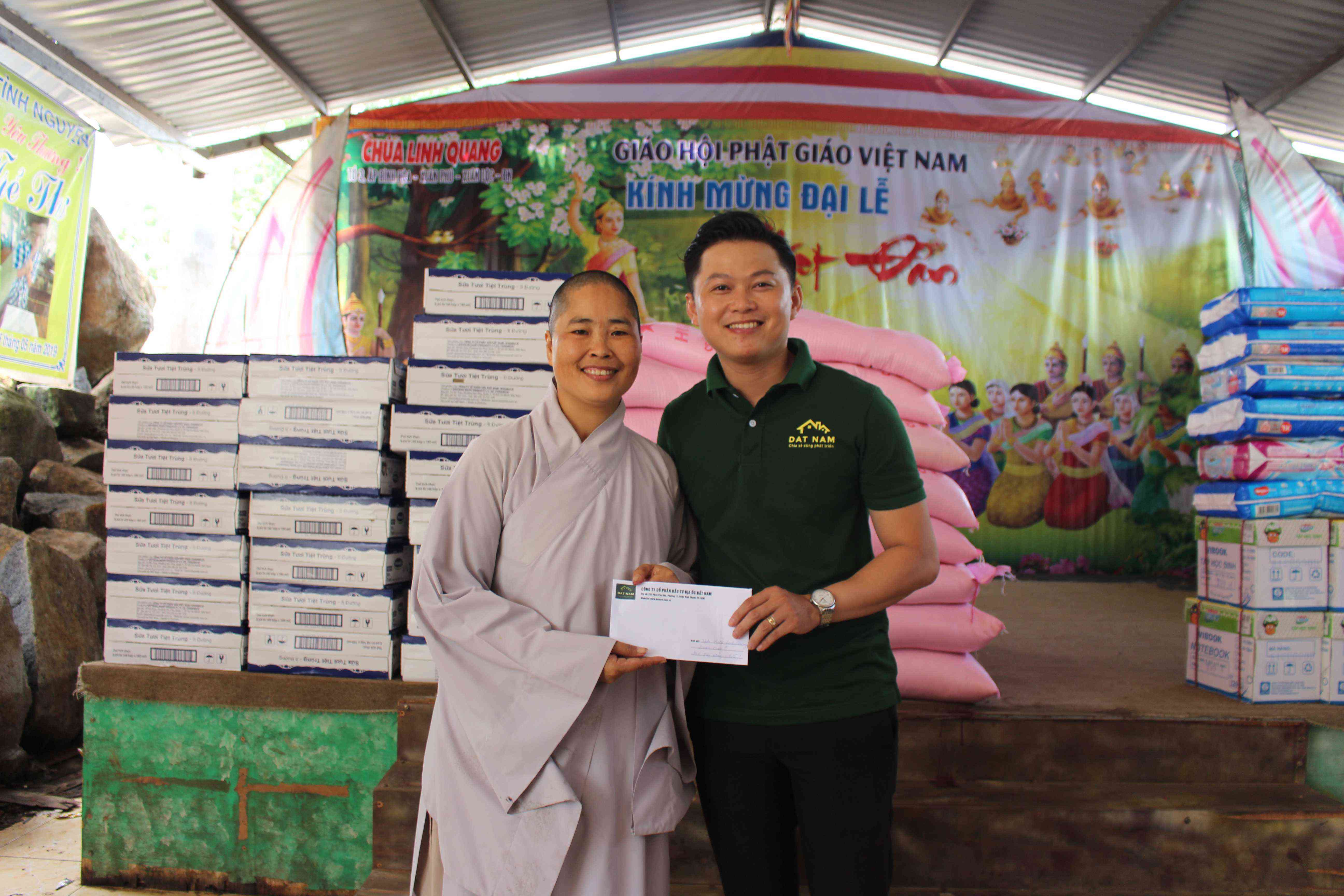 Chị Trần Thị Hào - thay mặt Công ty Địa Ốc Đất Nam và cũng là đại diện Quỹ từ thiện Khát Vọng Đất Nam đã tặng quà cho các cháu bé tại Mái Ấm Linh Quang ở Xuân Phú, Xuân Lộc, Đồng Nai. Theo đó, Quỹ Khát Vọng Đất Nam nói chung và Công ty Địa Ốc Đất Nam nói riêng sẽ trao tặng hơn 3000 phần quà cho hơn 150 cháu bé hiện được sự nuôi dưỡng ở chùa. Hoạt động thiện nguyện được tổ chức nhằm chia sẻ với các bé và mang đến một cuộc đầy đủ hơn nữa.