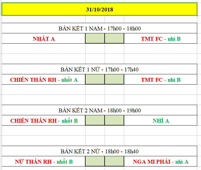 Ở vị trí còn lại nhì bảng A là đội Nga My Phái, nhì bảng B là đội TMT FC. Các cô gái của chúng ta đã cống hiến những màn tranh tài hết sức "vui nhộn" và kịch tính, vòng chung kết hứa hẹn sẽ hấp dẫn hơn nữa.
