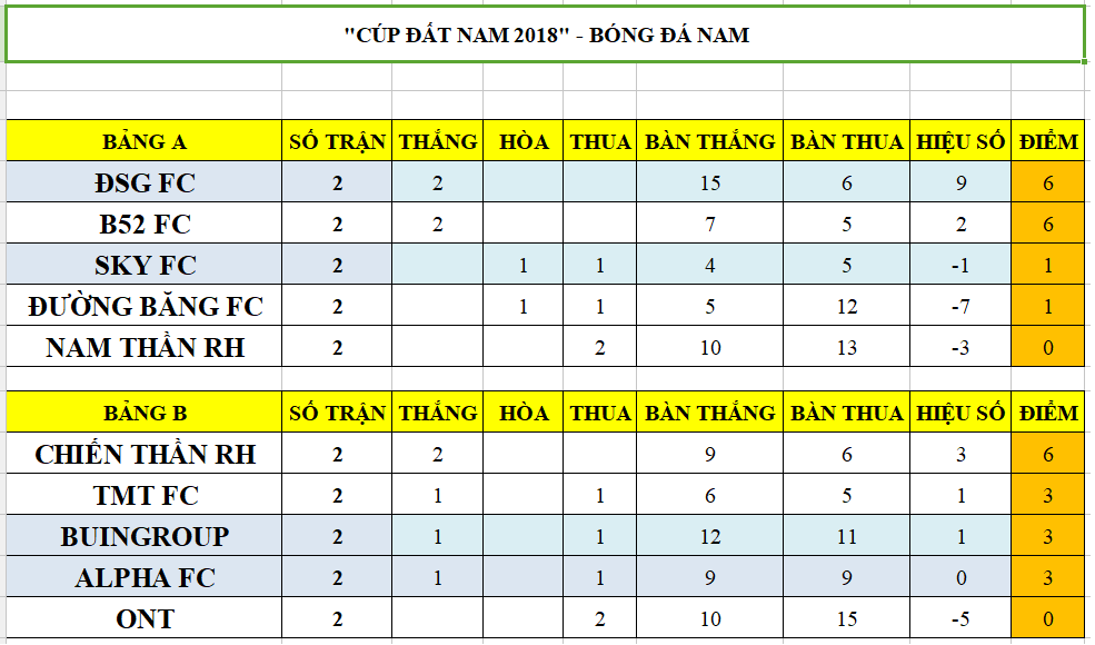 Bảng xếp hạng bóng đá nam.