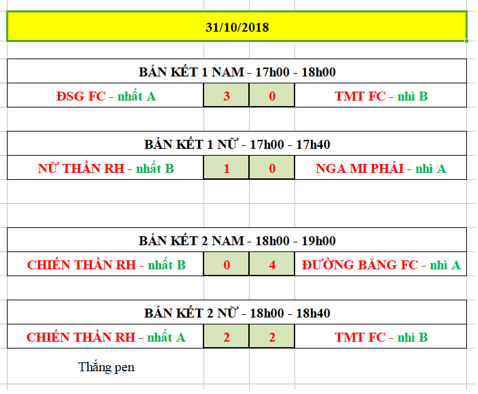 Ở vị trí còn lại nhì bảng A là đội Nga My Phái, nhì bảng B là đội TMT FC. Các cô gái của chúng ta đã cống hiến những màn tranh tài hết sức "vui nhộn" và kịch tính, vòng chung kết hứa hẹn sẽ hấp dẫn hơn nữa.